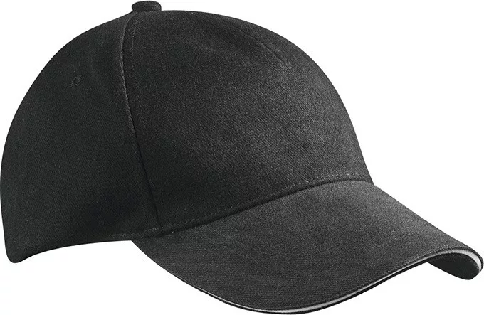 Modern, 5 paneles, kiváló minőségű fekete baseball sapka kontrasztos színösszeállításban.