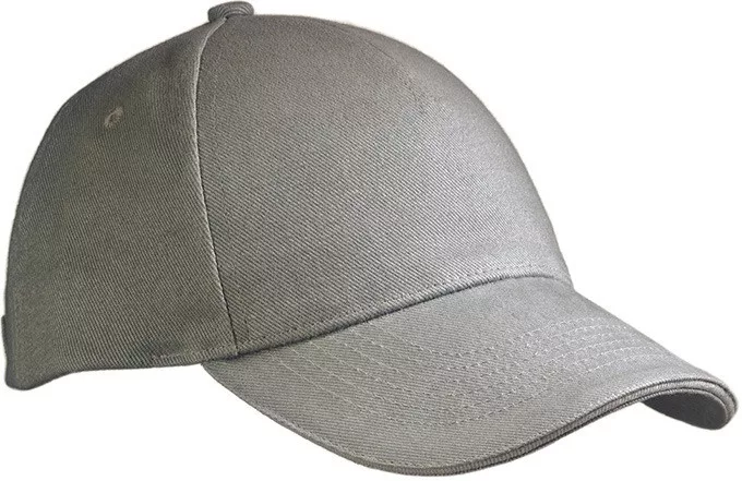 A sapka napellenzője meg van hajlítva, hogy jobban védjen a nap ellen. A szürke baseball sapka 4 hímzett szellőzőnyílással és tetején 6 varrásvonallal látták el.