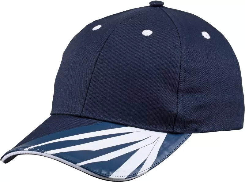 A sapka napellenzője meg van hajlítva, hogy jobban védjen a nap ellen. A kék baseball sapka látványos mintával és praktikus szellőzőnyílásokkal készült.