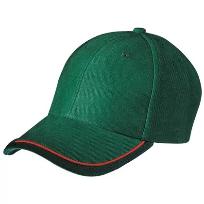 Kiváló minőségű termékünk ez a 6 paneles, állítható zöld pamut baseball sapka, kontrasztos színösszeállításban!