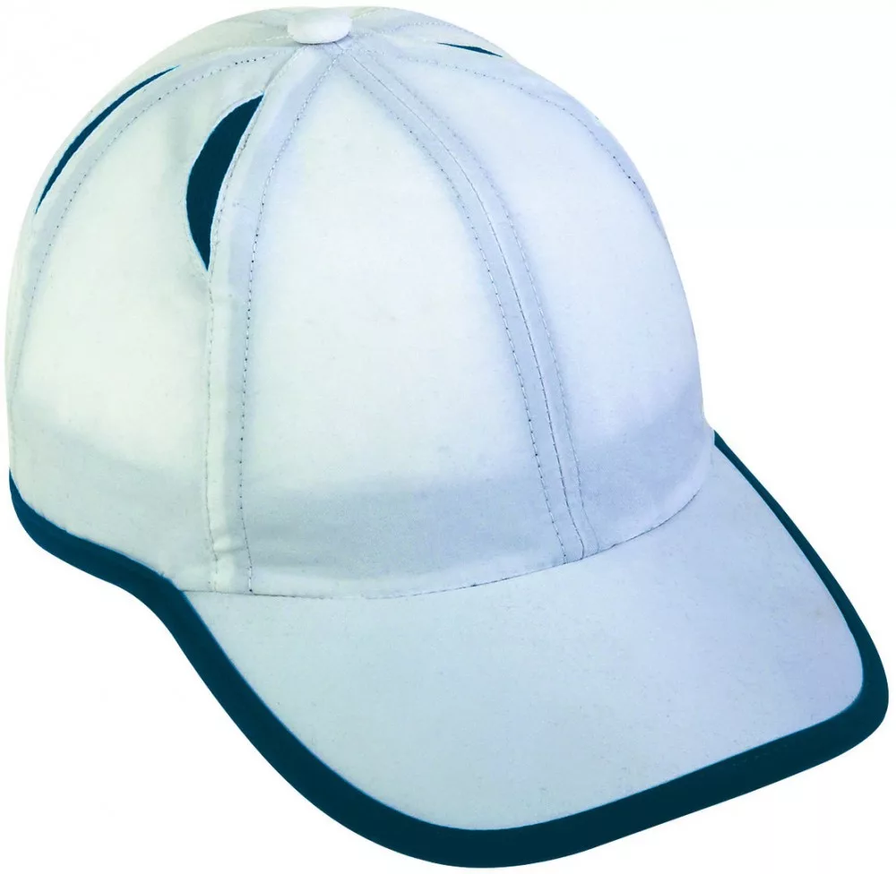 Kiváló minőségű termékünk ez a 6 paneles, állítható, légáteresztő, szélálló és vízlepergető fehér pamut baseball sapka, kontrasztos színösszeállításban!