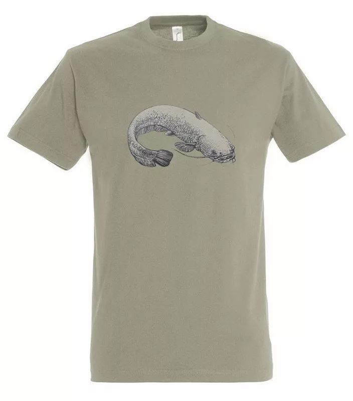 Kiváló minőségű termékünk ez az uniszex, klasszikus szabású, rövid ujjú pamut póló, a mellközép részen harcsa mintával!