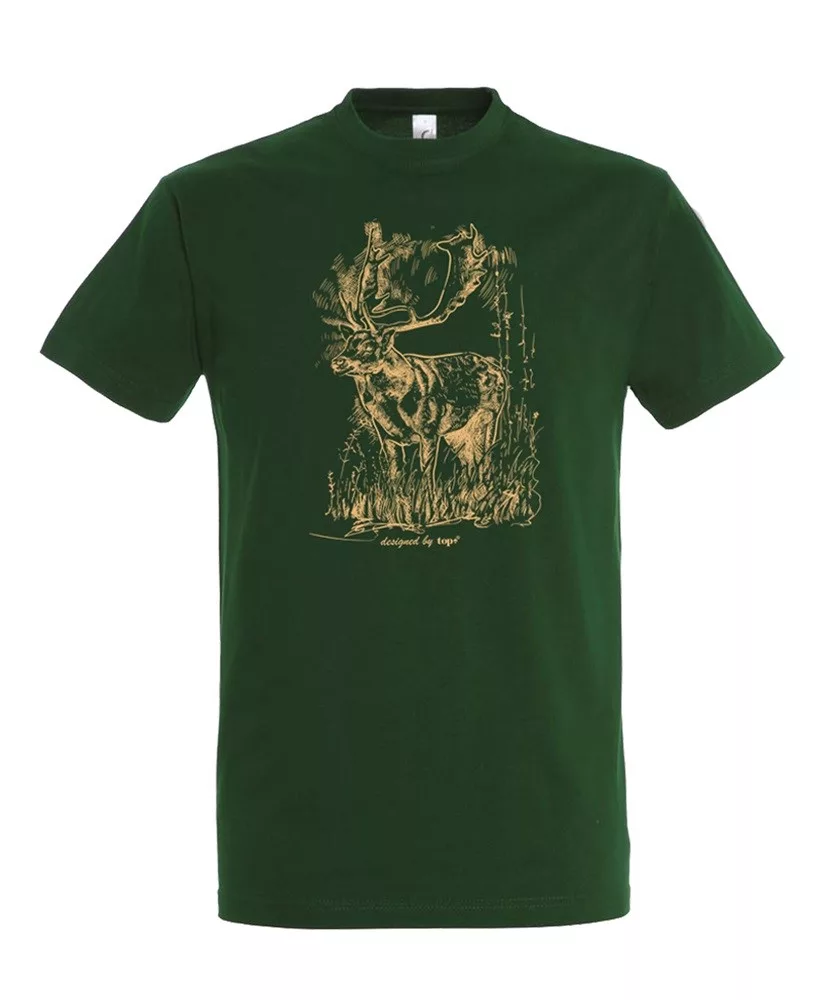 Kiváló minőségű termékünk ez az uniszex, klasszikus szabású, rövid ujjú pamut póló, a mellközép részen szarvas mintával!