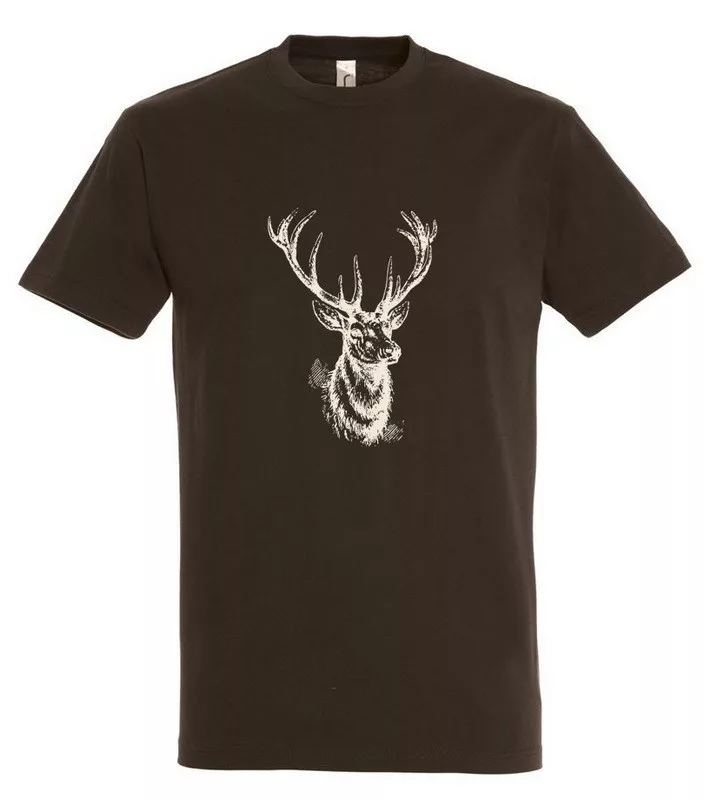 Klasszikus szabású, minőségi barna póló, single jersey anyagból, szarvas nyomással
