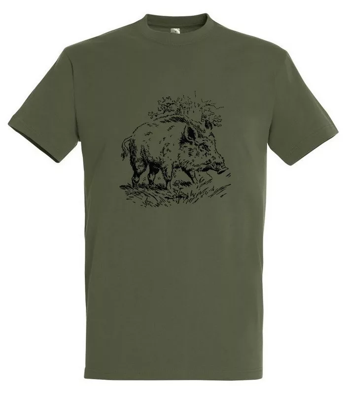 Klasszikus szabású, minőségi zöld póló, single jersey anyagból, vaddisznó nyomással