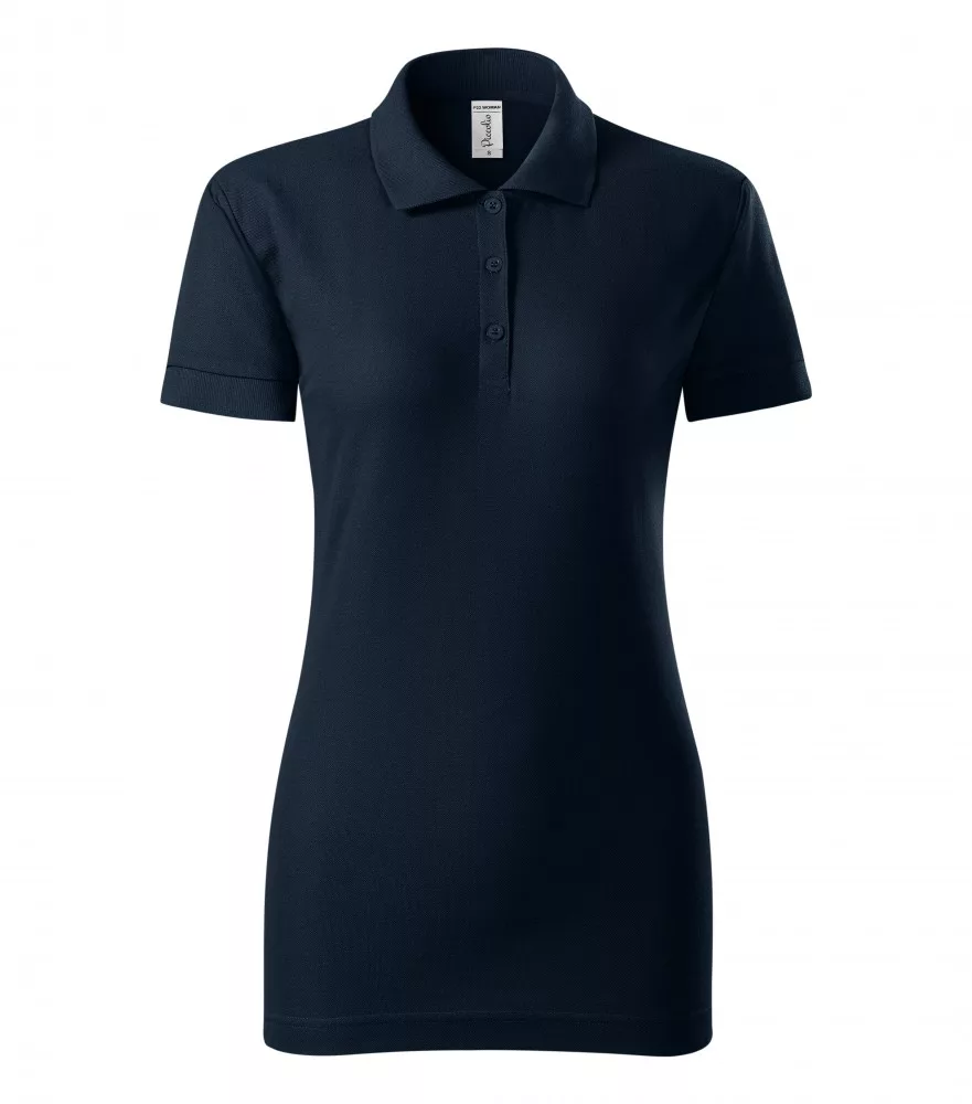 A galléros női póló anyaga 65% pamutból és 35% poliészterből (Pique) készült, 170 g/m2 súlyú.