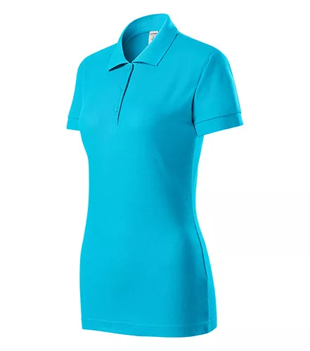 A galléros női póló anyaga 65% pamutból és 35% poliészterből (Pique) készült, 170 g/m2 súlyú.