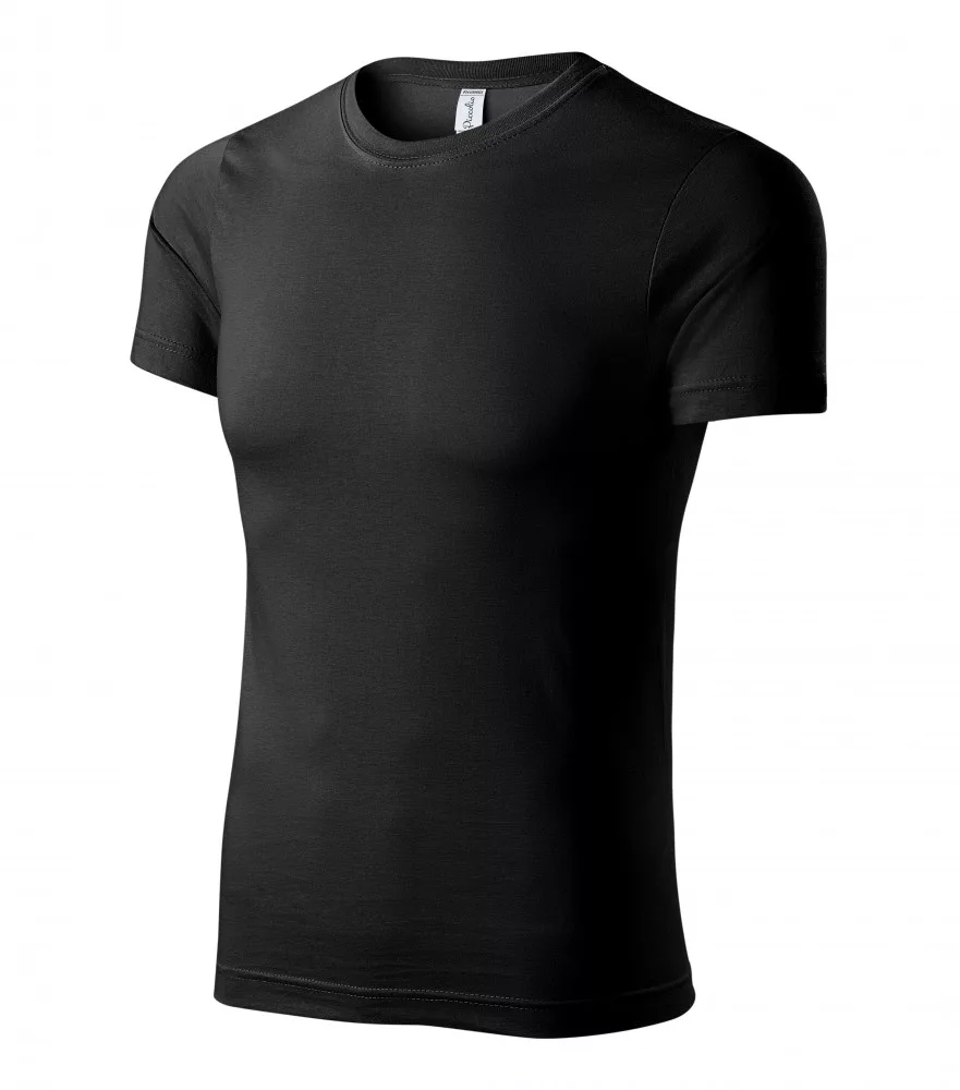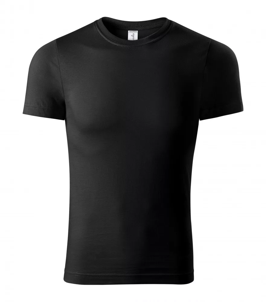 A fekete póló anyaga 100% pamutból készült, 175 g/m2 súlyú. Klasszikus szabású, kiváló minőségű fekete póló single jersey anyagból.