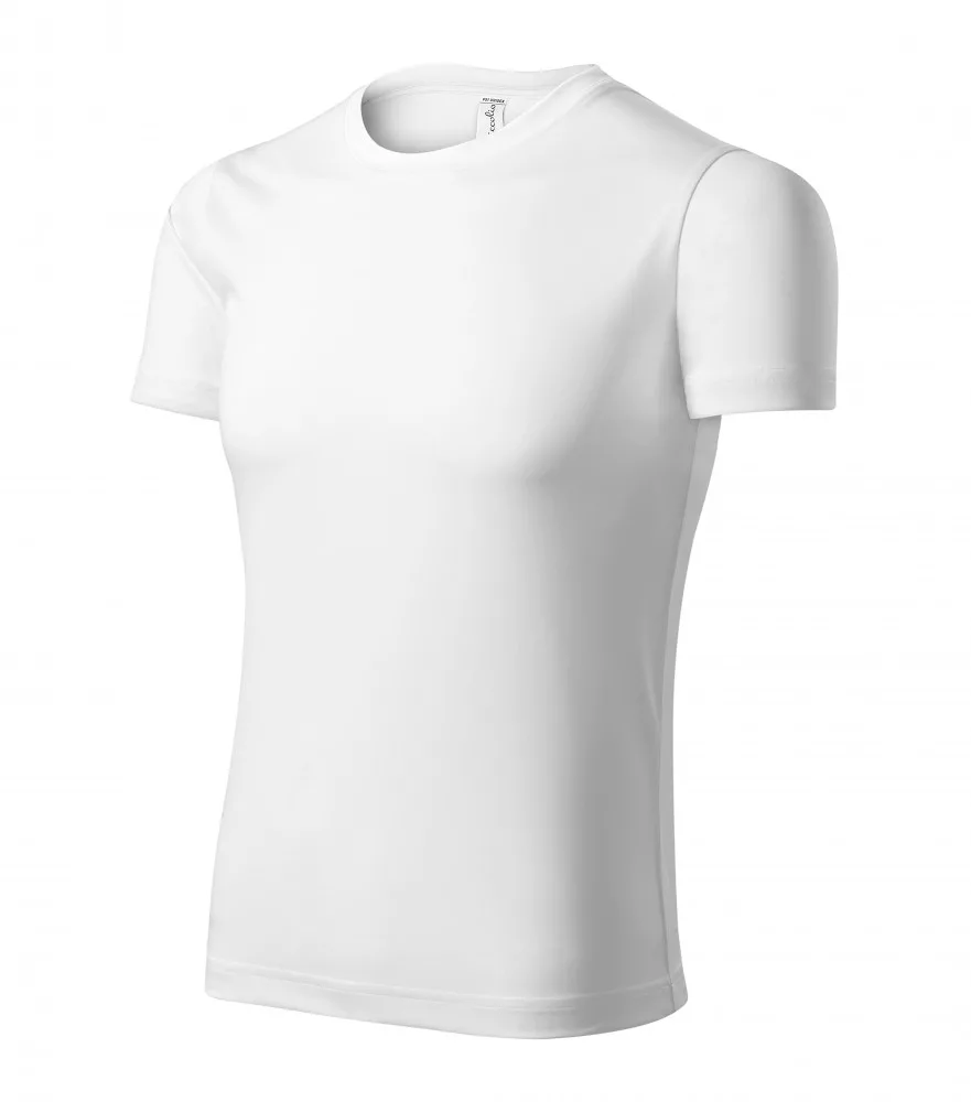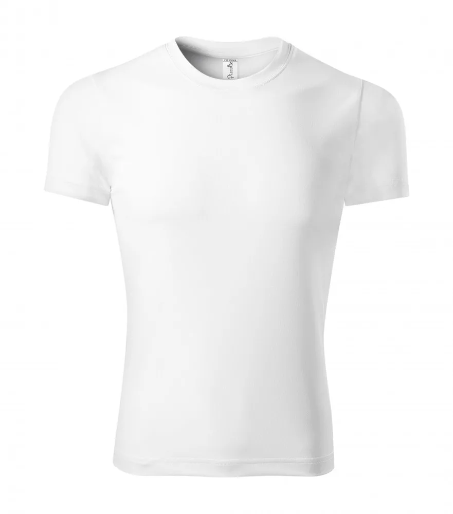 A fehér póló anyaga 100% poliészterből készült (DOUBLE FACE - Kétoldalú póló), 130 g/m2 súlyú. Gyorsan száradó, finom anyagból készült póló.