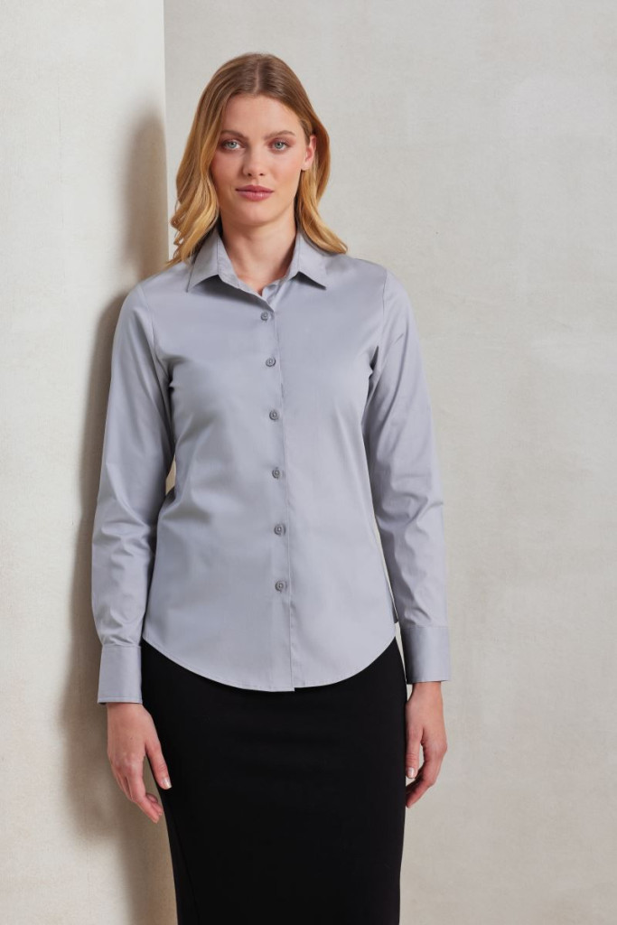 Premier hosszú ujjú női blúz Popline Stretch 115 ezüst