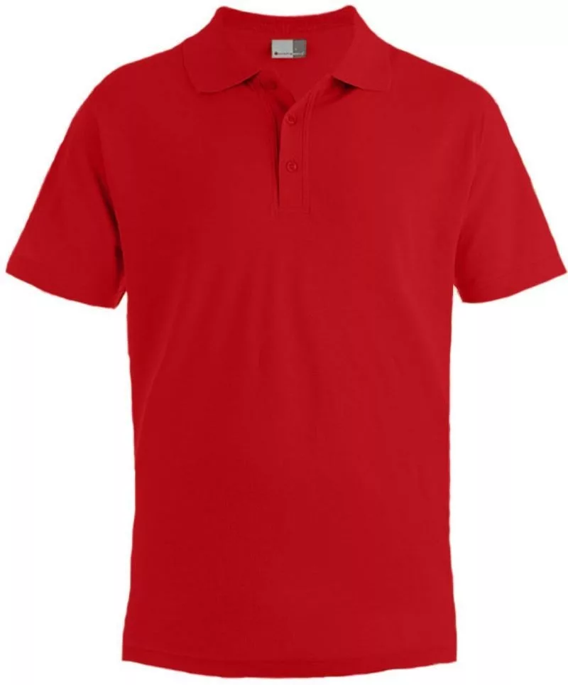 A piros galléros póló anyaga 100% pamutból (fésült) készült, 220 g/m2 súlyú.
