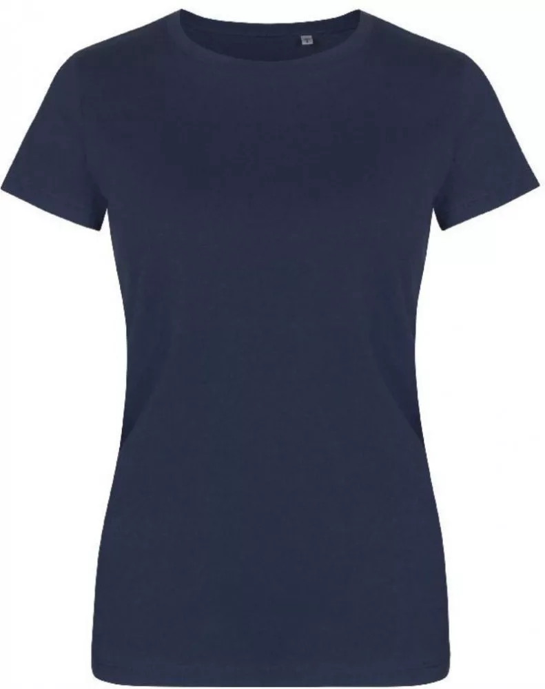 A kék rövid ujjú női póló anyaga 100% pamutból (single jersey) készült, 140 g/m2 súlyú.