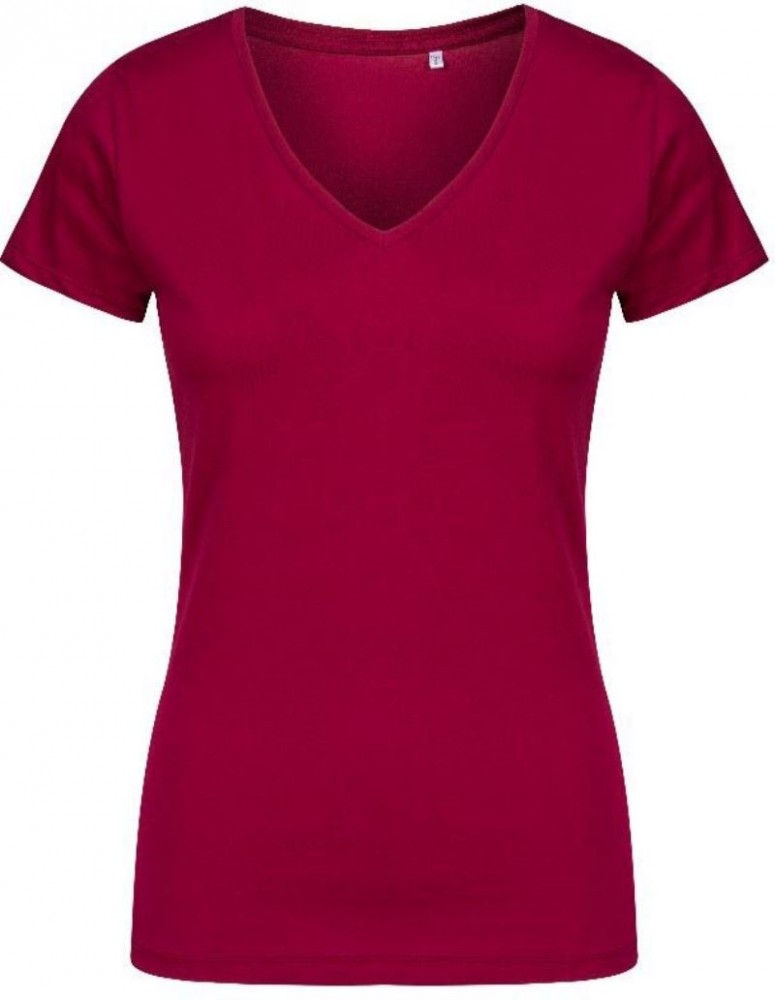 Kiváló minőségű termékünk ez a karcsúsított szabású bordó rövid ujjú női póló, V-nyakkivágással.