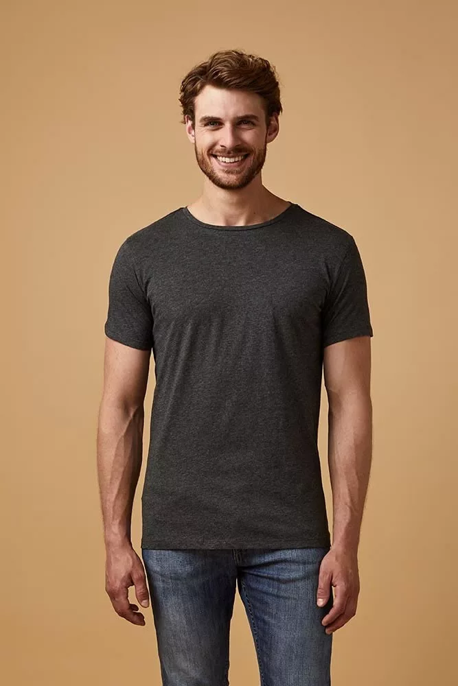Testhezálló szabású, kiváló minőségű fekete rövid ujjú póló, kerek nyakkivágással.