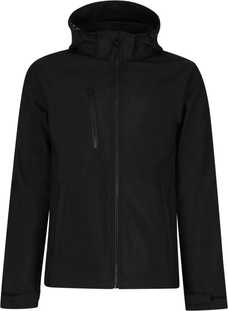 Klasszikus szabású Regatta TRA688 Venturer dzsekiállítható levehető softshell kapucnival, állítható ujjvégekkel, cipzáras oldal- és 1 cipzáras mellzsebbel, részben újrahasznosított poliészter XPT 3-régetű softshell szövetből, légáteresztő, szél- és vízálló membránnal, valamint polár belsővel!