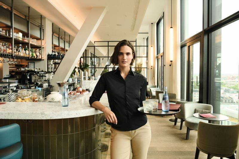 A fekete ing kiváló minőségű kevertszálas anyaga 97% pamutból és 3% elasztánból készült, 140 g/m2 súlyú. A fekete női ing az elasztán tartalomnak köszönhetően könnyen kezelhető!