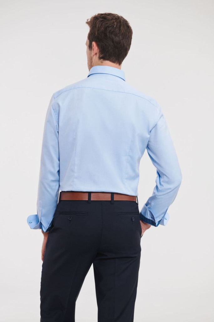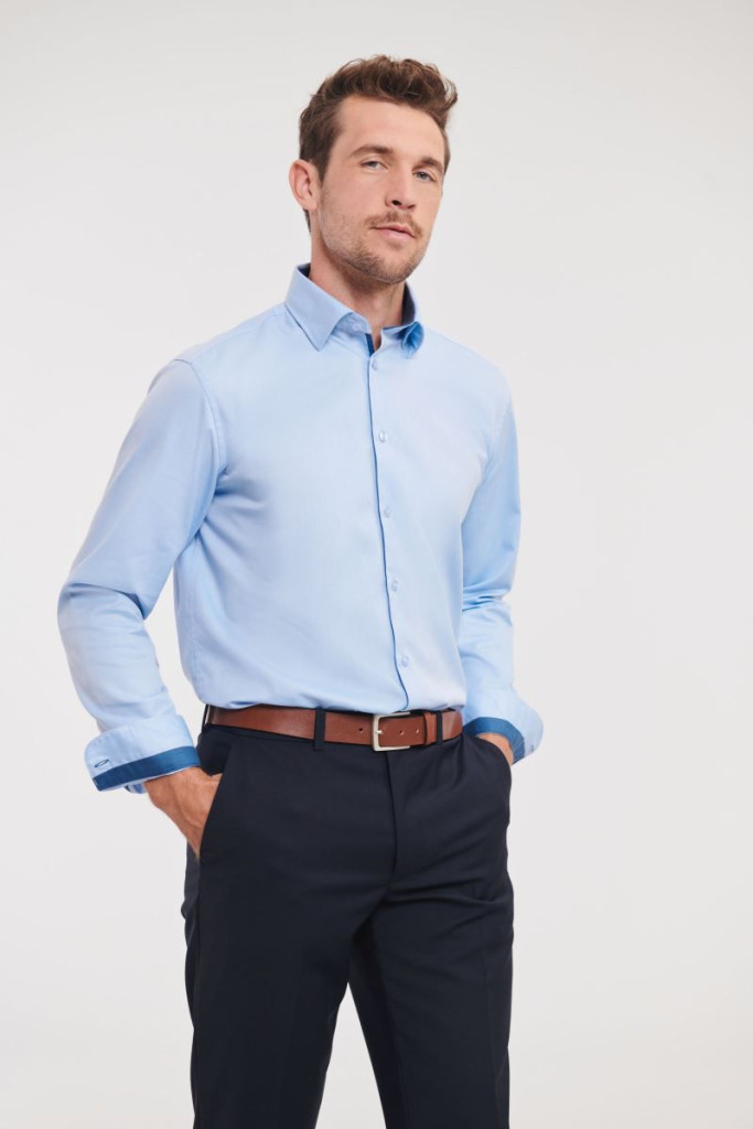 Russell hosszú ujjú ing Herringbone Contrast LSL 130 világoskék-középkék-tengerkék