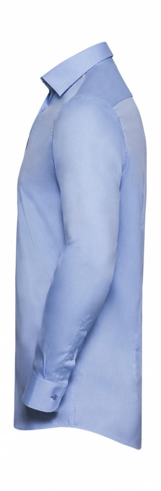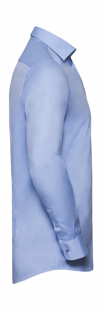 A kerekített alj és a klasszikus gallér elegáns benyomást kelt, ugyanakkor a kerekített, 2 gombbal állítható mandzsetta sportosabb, vagányabb megjelenést kölcsönöznek a Russell ingnek.