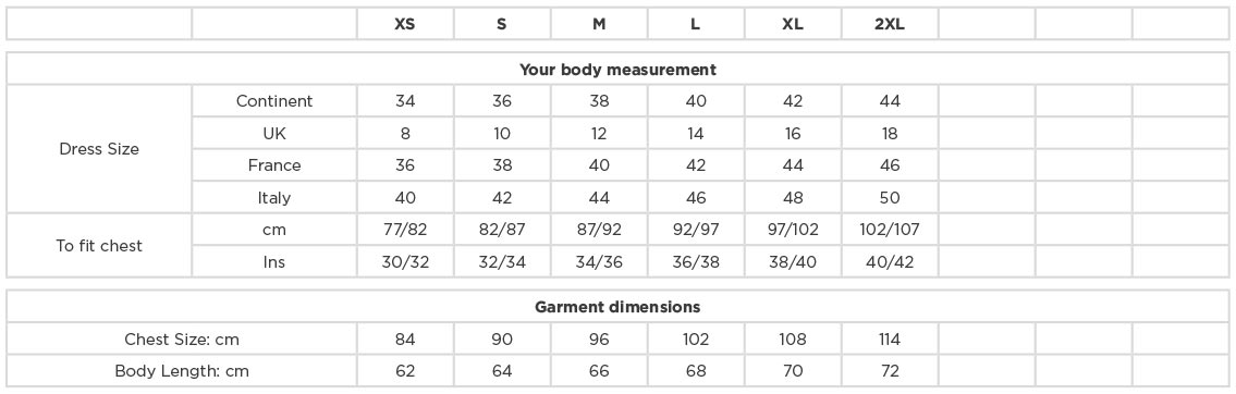 A termék az alábbi méretekben kapható: XS, S, M, L, XL, XXL