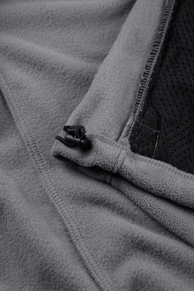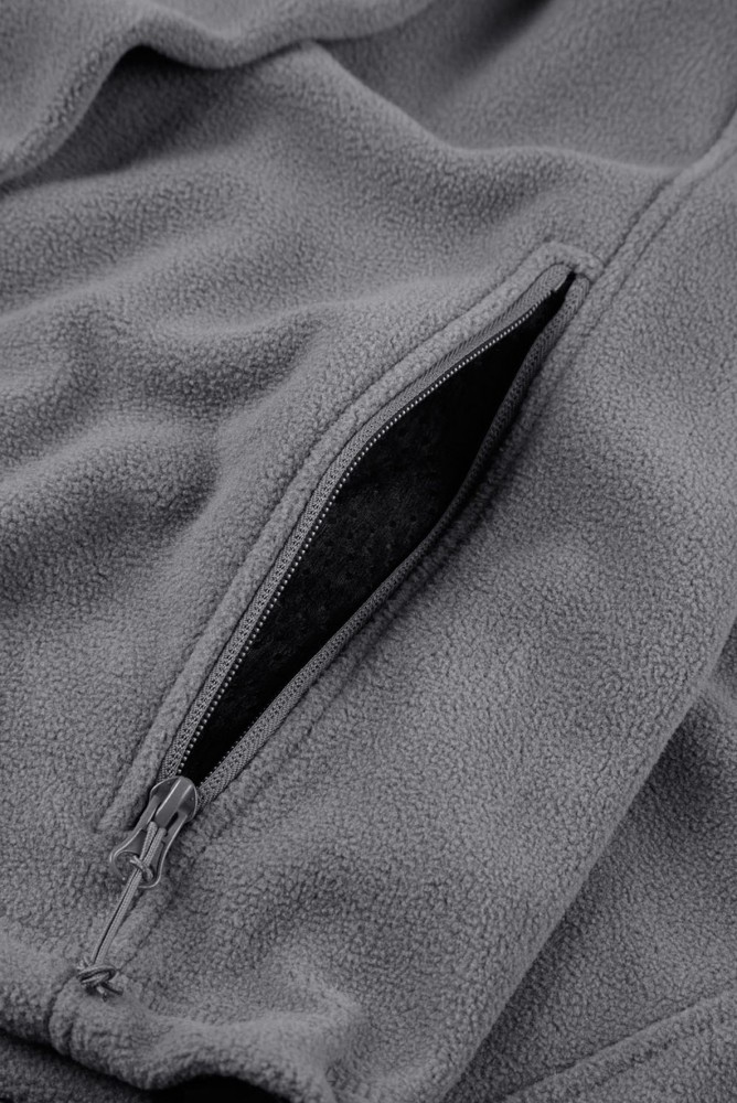 Enyhén karcsúsított szabású, kiváló minőségű, cipzáros szürke női polár pulóver Fleece anyagból cipzáros zsebekkel.