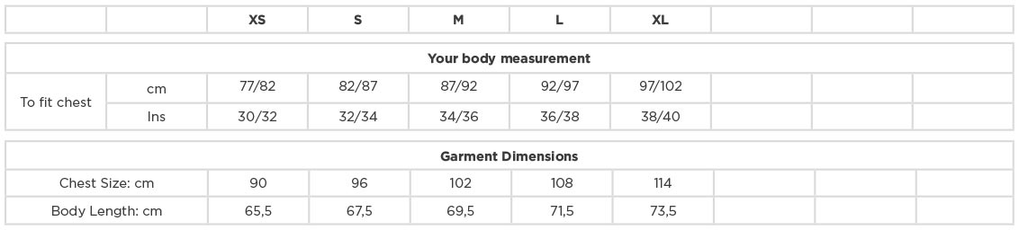 A termék az alábbi méretekben kapható: XS, S, M, L, XL