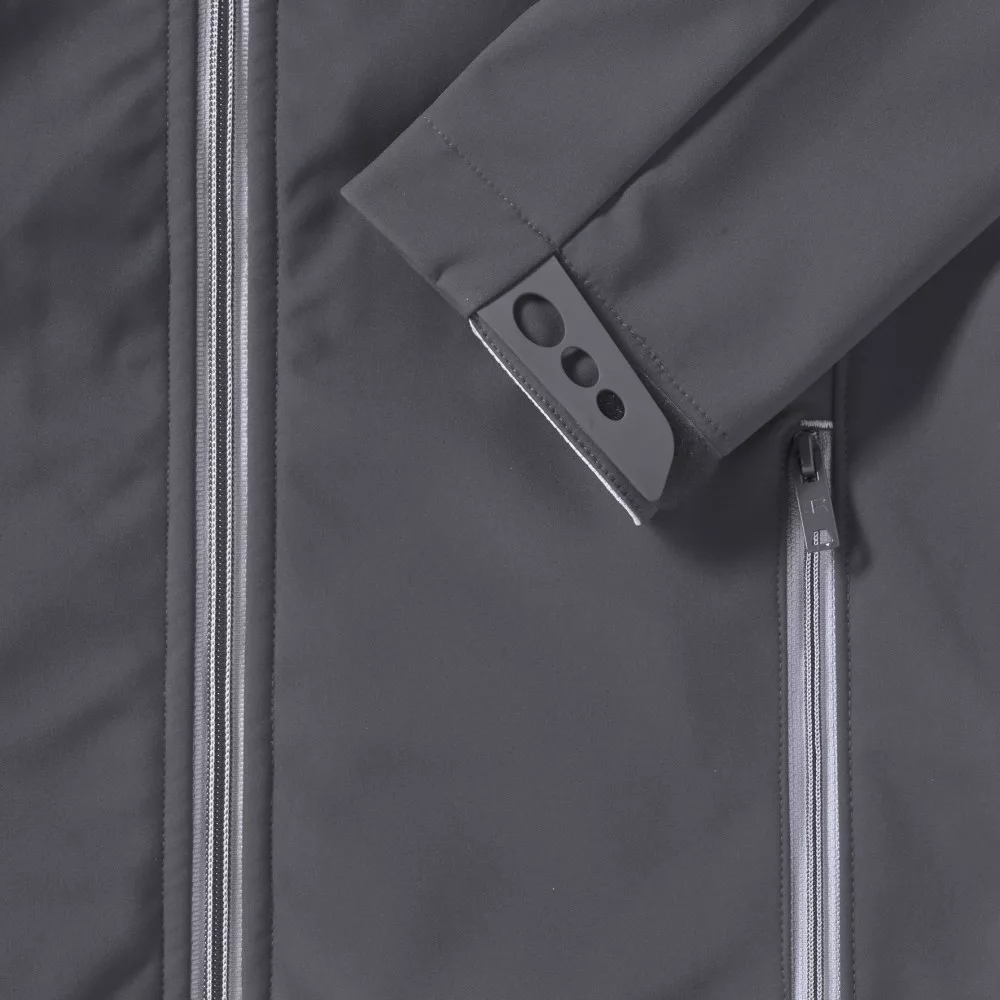 Kiváló minőségű termékünk ez a divatos fazonú, szél-és vízálló, légáteresztő szürke női softshell dzseki a karok alatt légáteresztő panelekkel.