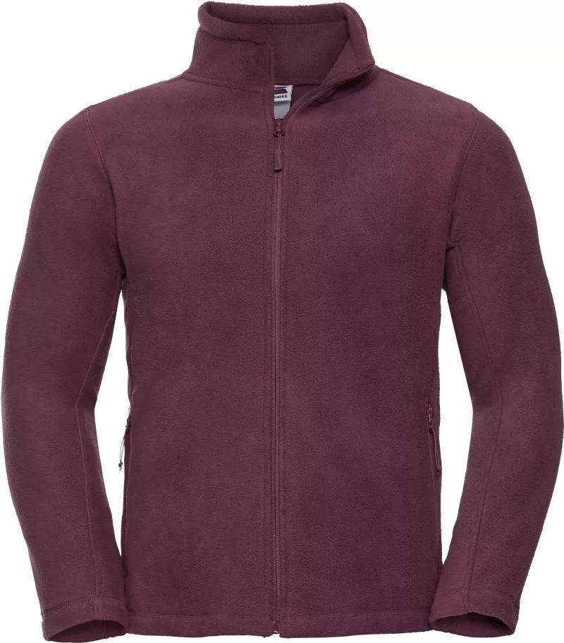 Klasszikus szabású, kiváló minőségű, cipzáros burgundi polár pulóver Fleece anyagból cipzáros zsebekkel.