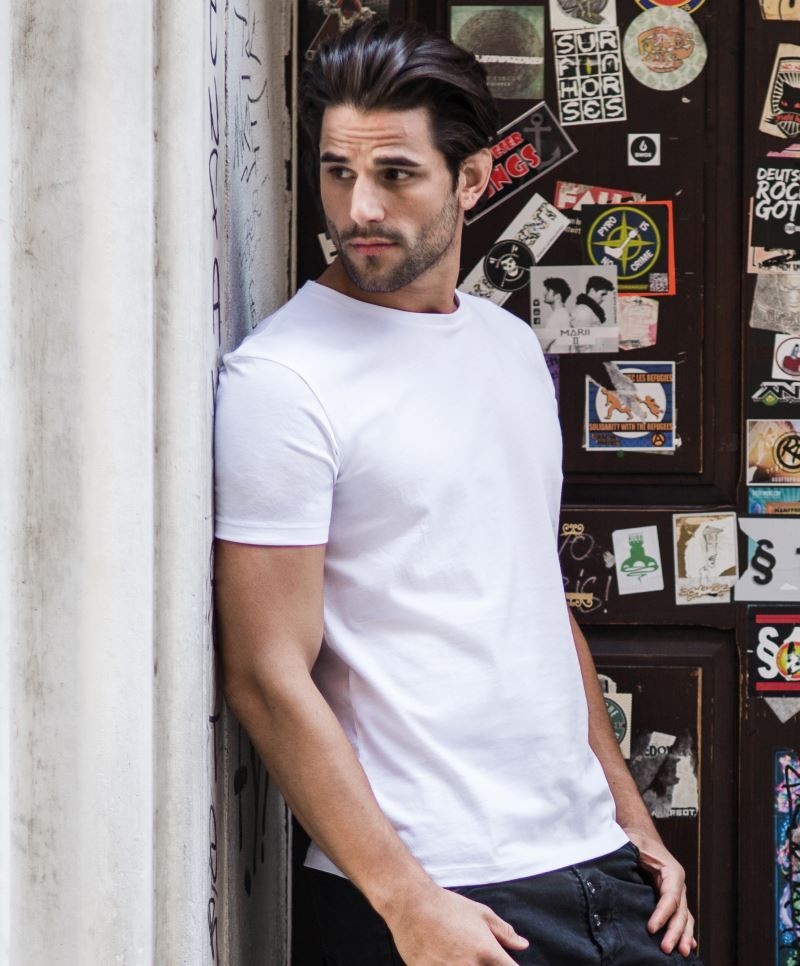 Divatos fazonú, kiváló minőségű, rövid ujjú fehér póló oldalvarrással