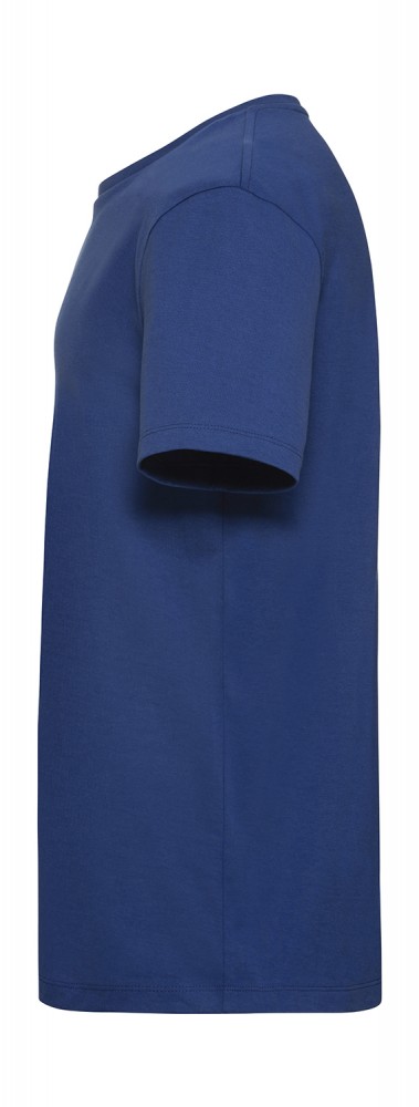 Divatos fazonú, kiváló minőségű, rövid ujjú kék póló oldalvarrással