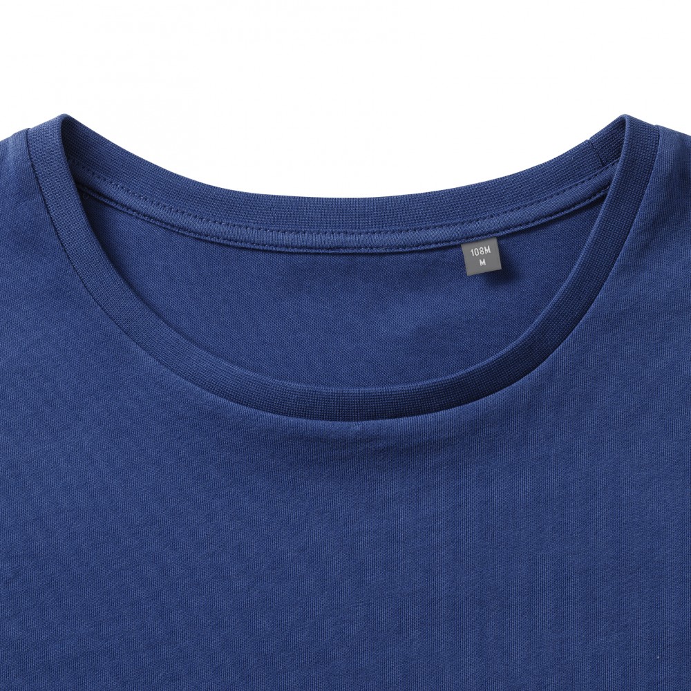 A kék póló anyaga 100% pamutból (fésült, gyűrűsfonású, organikus, szimpla jersey) készült, 160 g/m2 súlyú.