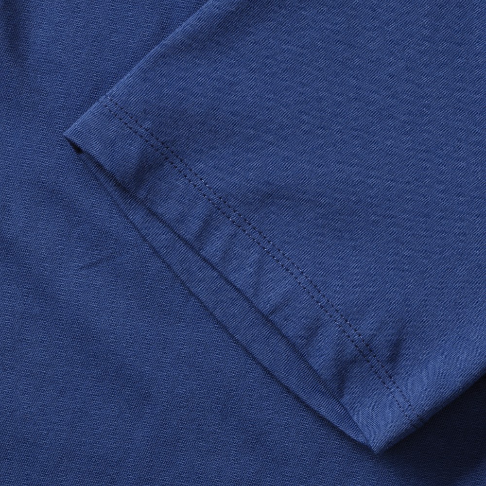 Kiváló minőségű termékünk ez a divatos fazonú rövid ujjú kék póló, oldalvarrással.