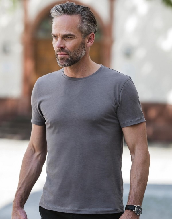 Divatos fazonú, kiváló minőségű, rövid ujjú szürke póló oldalvarrással