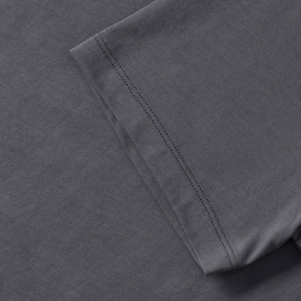 A szürke póló anyaga 100% pamutból (fésült, gyűrűsfonású, organikus, szimpla jersey) készült, 160 g/m2 súlyú.