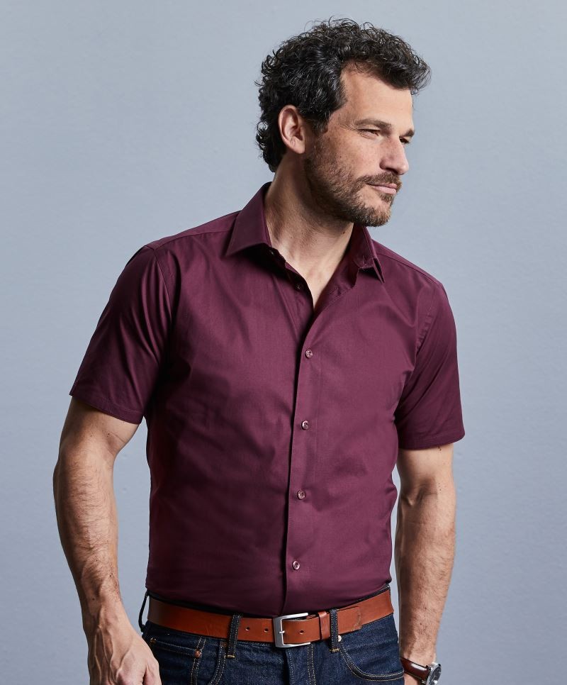 Russell rövid ujjú ing Easy Care Fitted 140 bordó