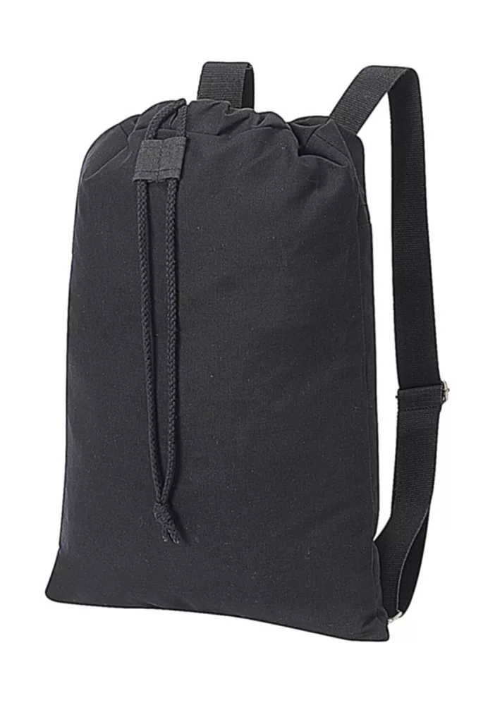 A fekete hátizsák anyaga 100% pamutból (vászon) készült. A hátizsák festett anyagból készült.