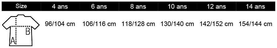 A termék az alábbi méretekben kapható: 104 cm/4 éves, 116 cm/6 éves, 128 cm/8 éves, 140 cm/10 éves, 152 cm/12 éves, 164 cm/14 éves