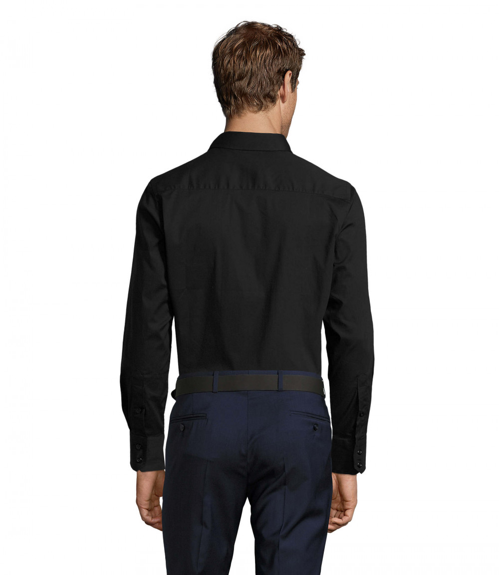 Enyhén karcsúsított szabású, kiváló minőségű hosszú ujjú fekete ing.