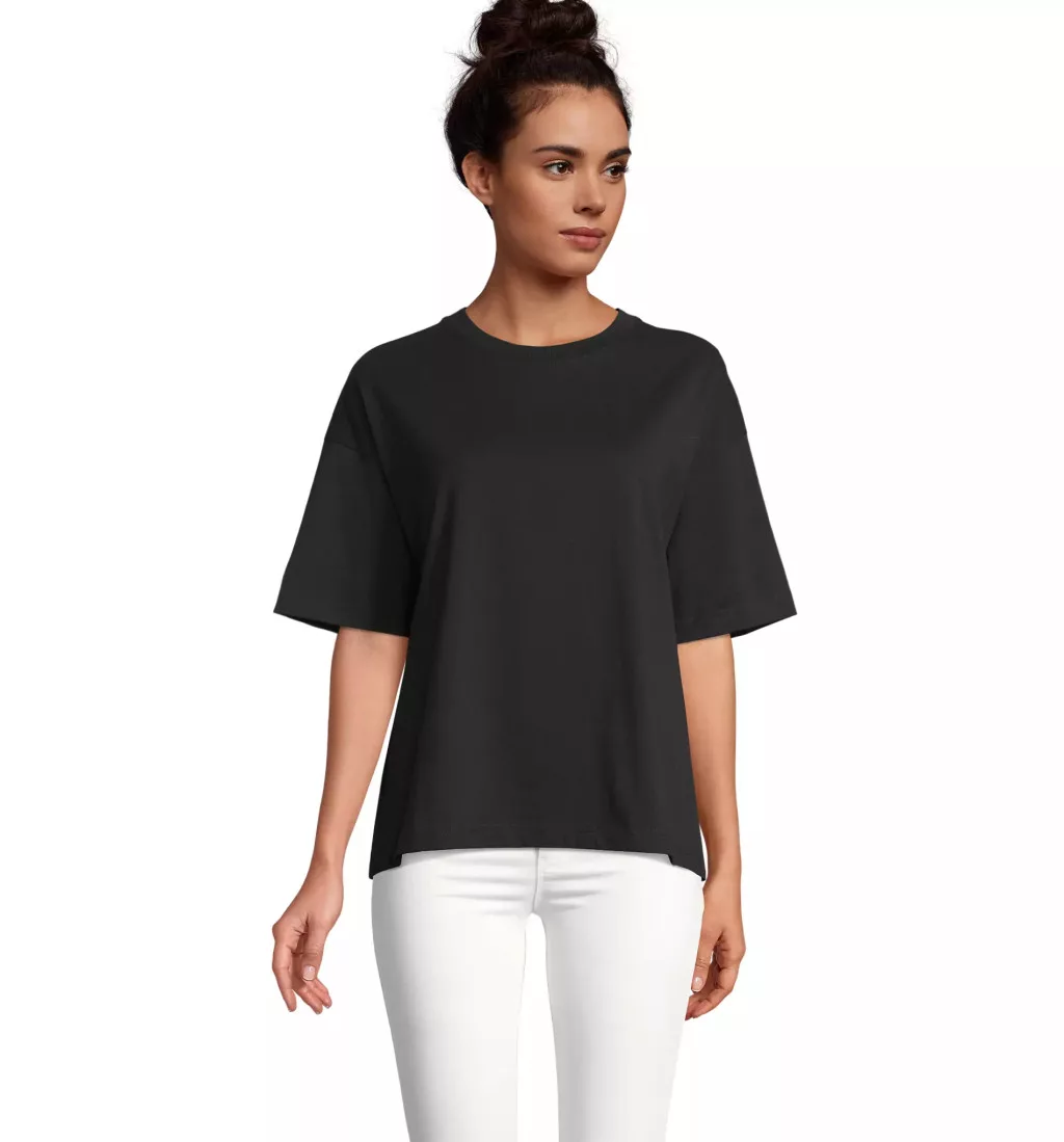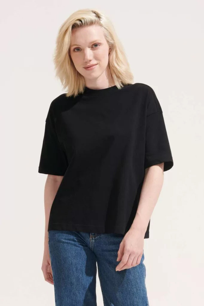 Oversized, bő szabású, Sol's Boxy Women póló, oldalvarrással, ejtett vállal, kerek bordázott nyakkal és rövid ujjal, tanúsított biopamut szövetből!