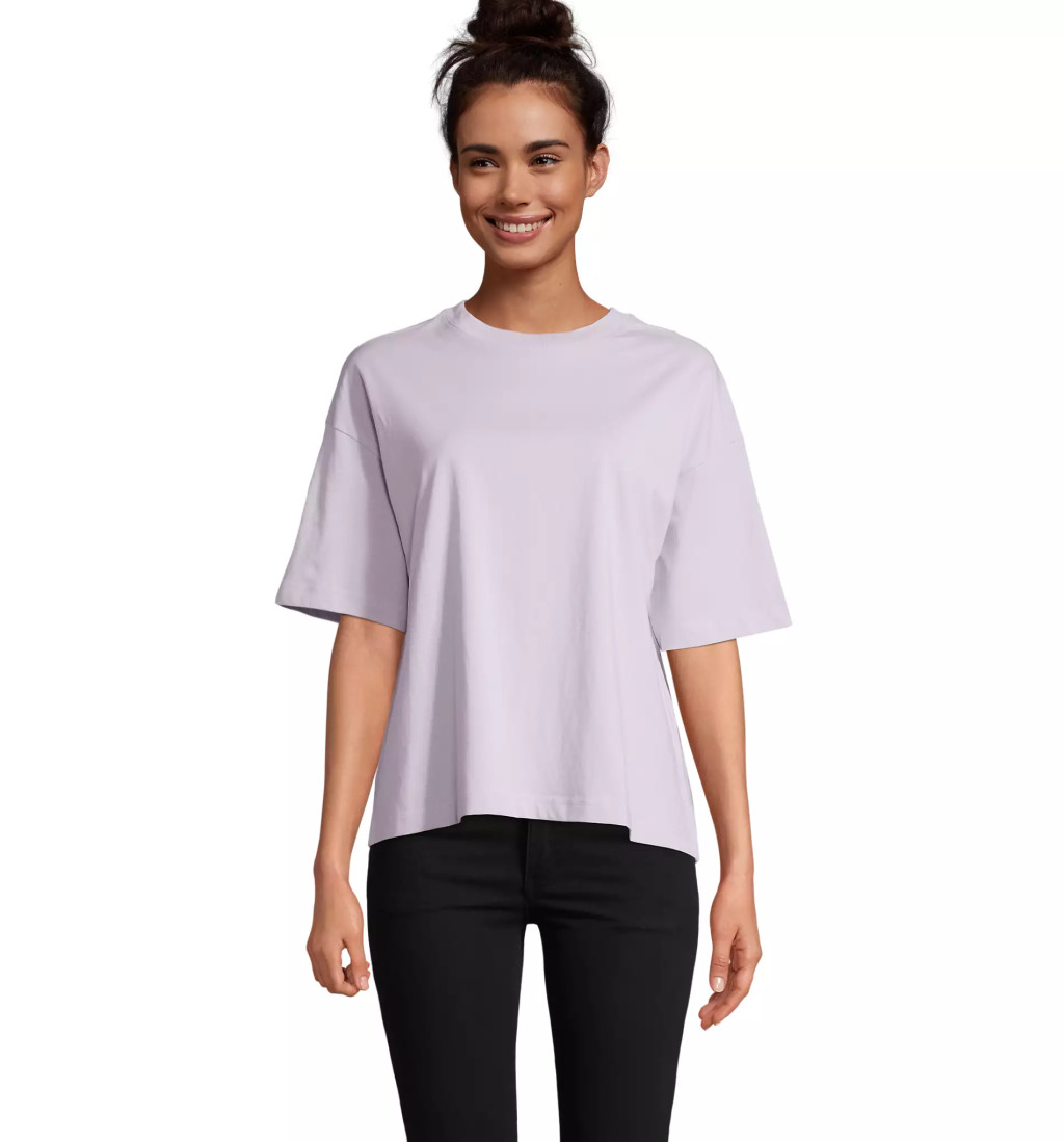 Oversized, bő szabású, Sol's Boxy Women póló, oldalvarrással, ejtett vállal, kerek bordázott nyakkal és rövid ujjal, tanúsított biopamut szövetből!