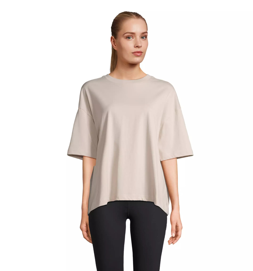 Oversized, bő szabású, Sol's Boxy Women póló, oldalvarrással, ejtett vállal, kerek bordázott nyakkal és rövid ujjal, tanúsított biopamut szövetből!