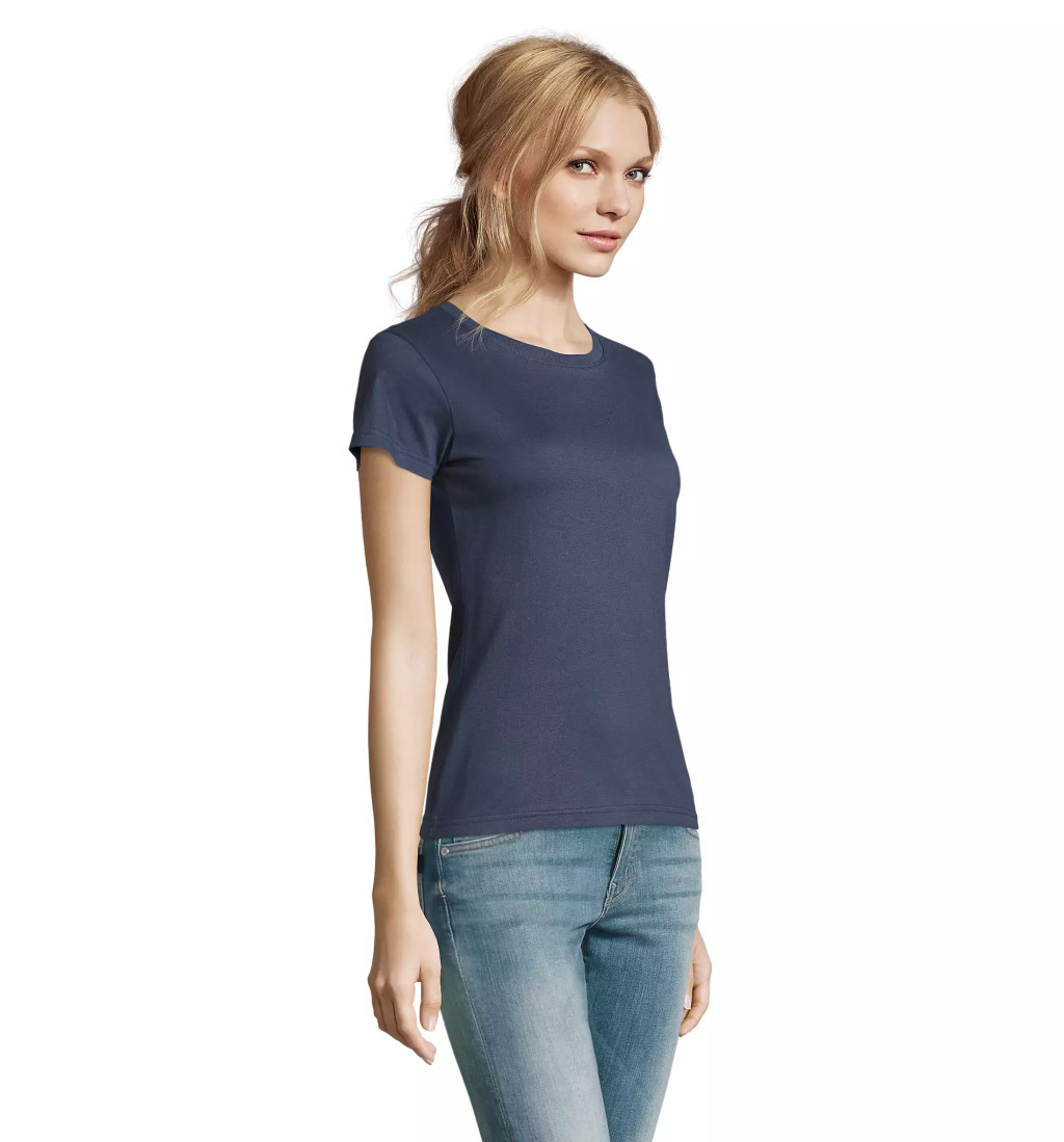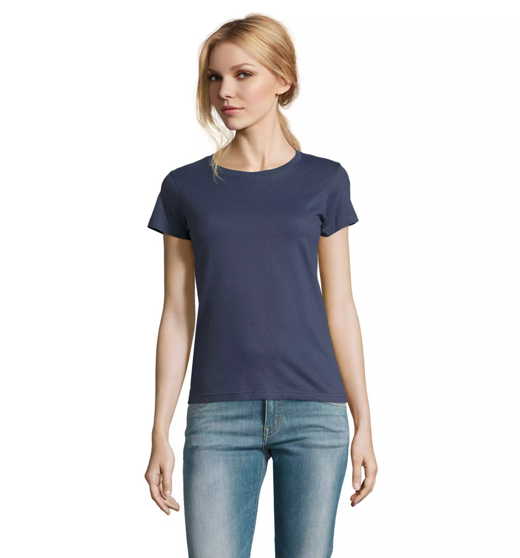 Karcsúsított, szabású, Sol's Imperial  női póló, oldalvarrással, rövid ujjal, szalagerősített nyakvonallal, elasztikus nyakpasszéval, pamut szövetből!