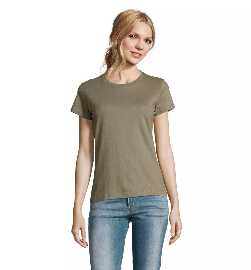 Karcsúsított, szabású, Sol's Imperial  női póló, oldalvarrással, rövid ujjal, szalagerősített nyakvonallal, elasztikus nyakpasszéval, pamut szövetből!