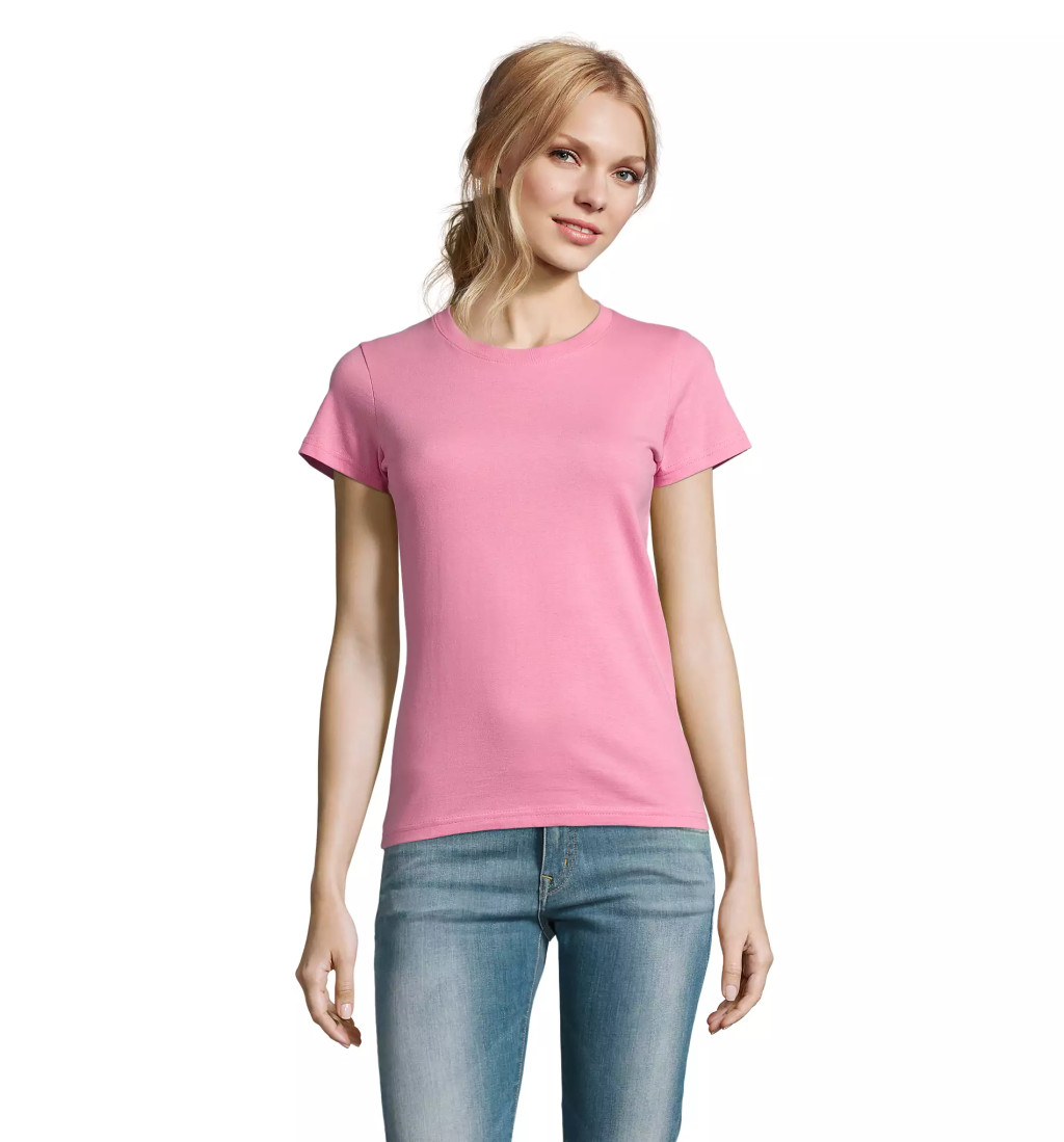 Karcsúsított, szabású, Sol's Imperial  női póló, oldalvarrással, rövid ujjal, szalagerősített nyakvonallal, elasztikus nyakpasszéval, pamut szövetből!