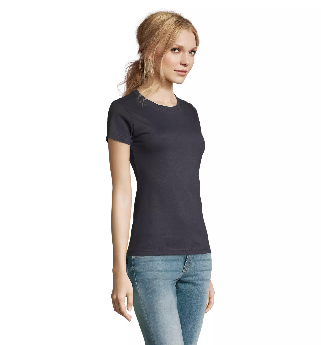 Karcsúsított, szabású, Sol's Imperial  női póló, oldalvarrással, rövid ujjal, szalagerősített nyakvonallal, elasztikus nyakpasszéval, pamut szövetből!