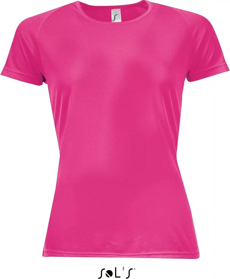 Kiváló minőségű termékünk ez a sportos fazonú, légáteresztő pink rövid ujjú női póló.