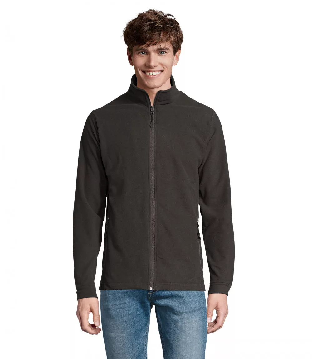 A polár pulóver állógallérral, 2 cipzáras oldalzsebbel és laposvarrással készült.