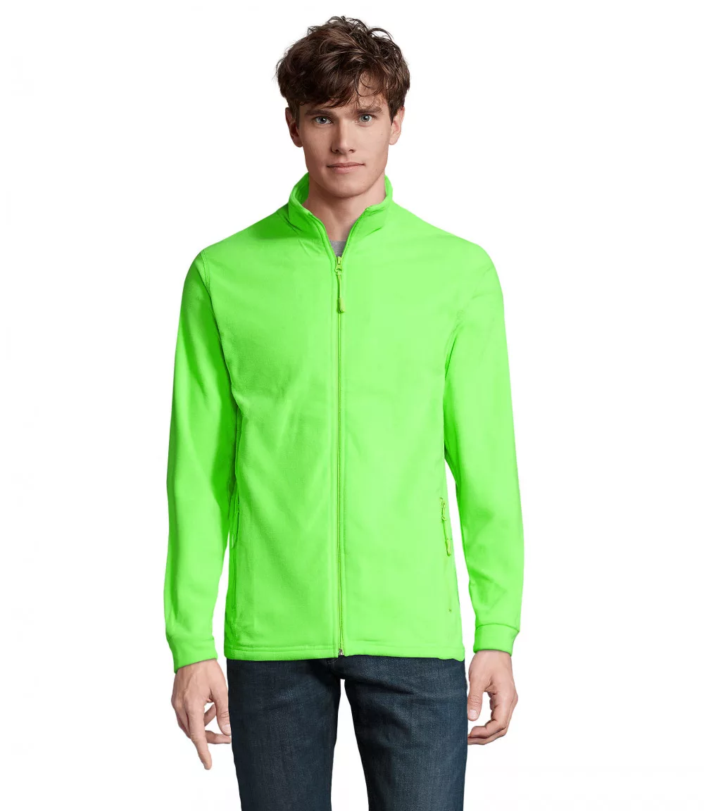 Klasszikus szabású, kiváló minőségű cipzáras zöld polár pulóver.
