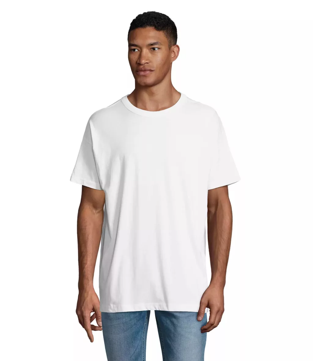 Oversized, bő szabású, Sol's Boxy Men póló, oldalvarrással, ejtett vállal, kerek bordázott nyakkal és rövid ujjal, tanúsított biopamut szövetből!