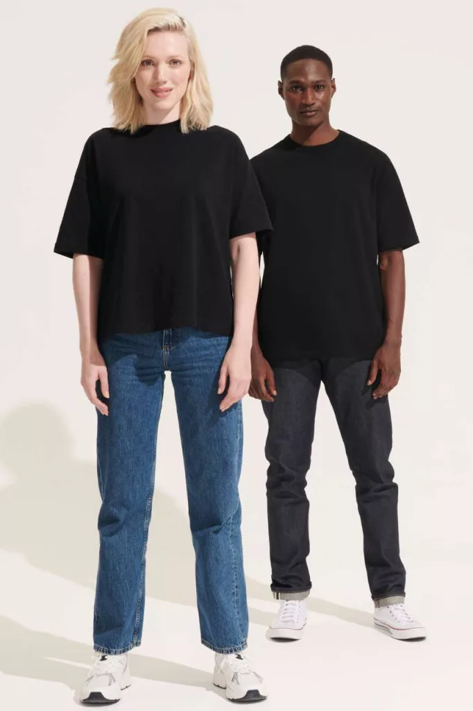 Oversized, bő szabású, Sol's Boxy Men póló, oldalvarrással, ejtett vállal, kerek bordázott nyakkal és rövid ujjal, tanúsított biopamut szövetből!