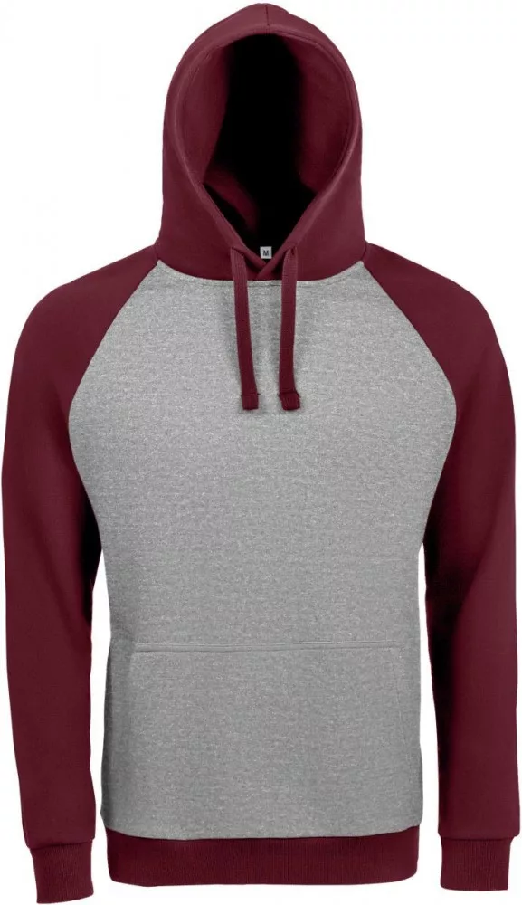 Kapucnis, kenguru zsebes, kiváló minőségű, szürke pulóver kontrasztos színű húzózsinóros kapucnival és raglán ujakkal